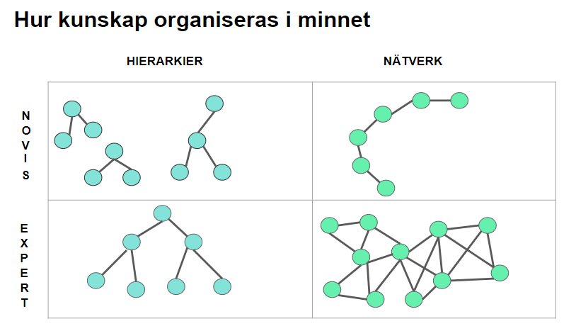Vår förståelse av världen är kopplad till våra kunskaper i långtidsminnet. Vi människor ser världen genom våra minnen. Det är genom våra minnen som vi tolkar och ger mening till det vi upplever i nuet. Det är även genom våra minnen som vi lättare kan komma ihåg saker i framtiden. Detta inlägg kommer att handla om hur kunskap organiserar i minnet och vilka konsekvenser det får för undervisning och bedömning.